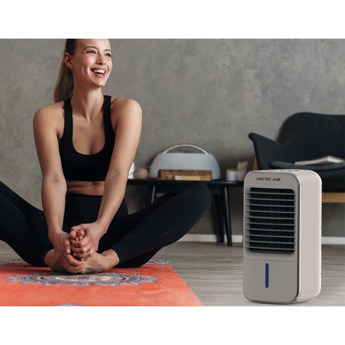 This personal evaporative air cooler allows you to enjoy cooler, chilled air practically anywhere. Simply fill it with water, turn it on, and turn hot air into cooler, refreshing air. Lightweight and portable; oscillates for larger area coverage. It can run for up to 16 hours per fill, depending on speed setting and room temperature and humidity levels.