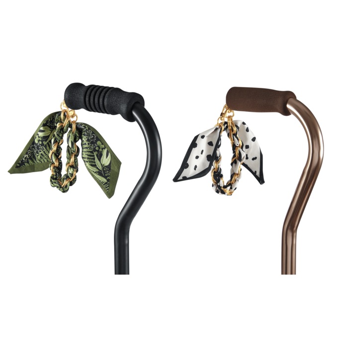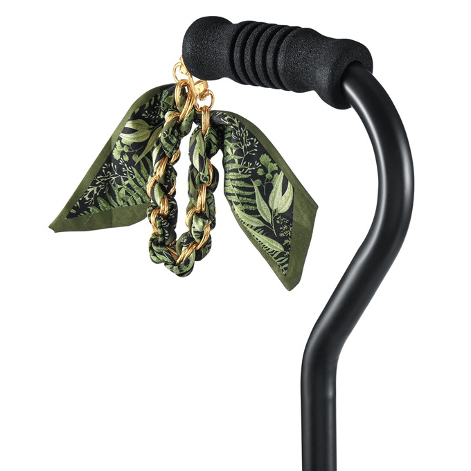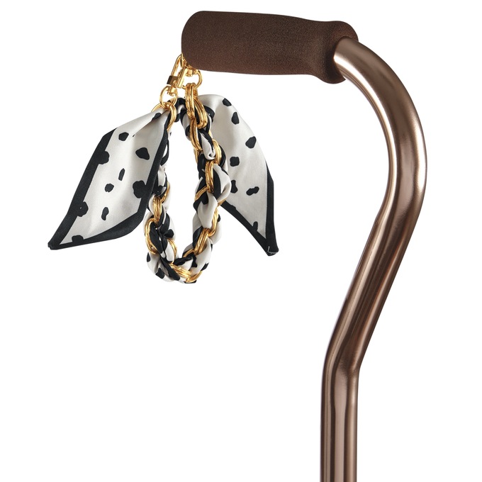 Elevate your look while safeguarding your cane! Can be repurposed to embellish your hair, bag, or as a fashion accessory. Clip holder for easy attachment. Polyester and metal. Spot clean only. Imported. 12"L x .63"W x 5"H.