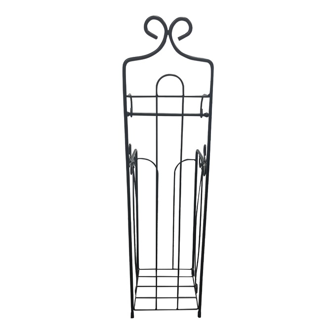 Add a touch of class to your bathroom while adding storage! Holds 3 rolls in storage base and 1 on top. Iron. 6.1"Sq. x 24"H.