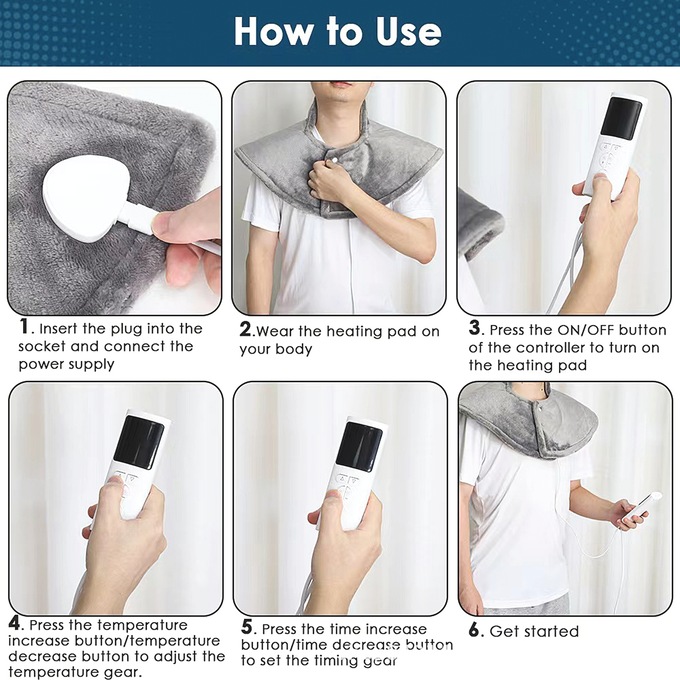 Ease stiff neck and shoulders with deeply penetrating heat that soothes sore muscles and joints while keeping you warm on cold days! Wear around neck and shoulders. Straps hold pad in place for hands-free use! Choose between 6 heat settings and 4 timer settings. Flannel micro plush provides maximum comfort! Removable controller. Polyester. Machine or hand wash. 3 lbs.